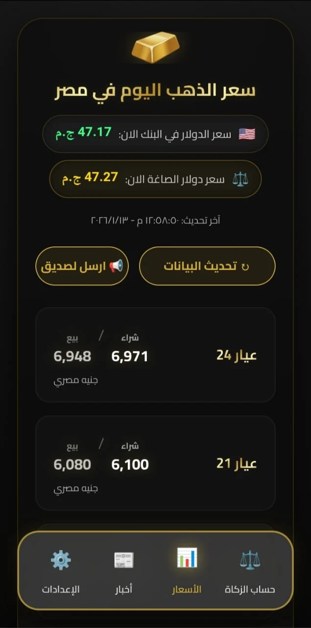 تطبيق اندرويد متقدم لعرض سعر الذهب الان في مصر