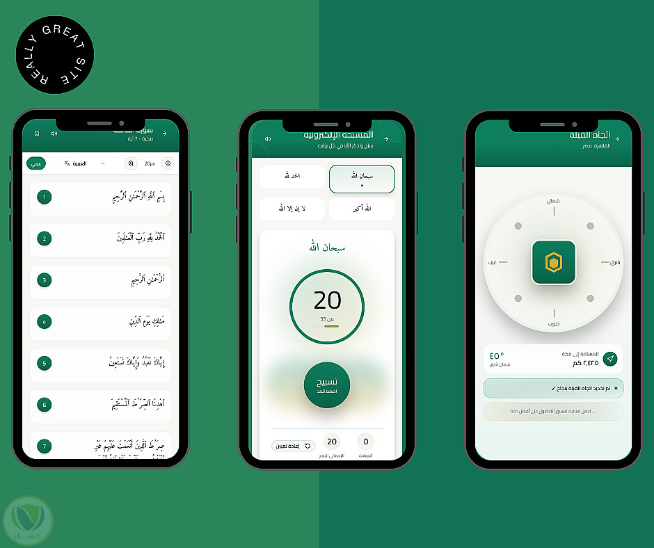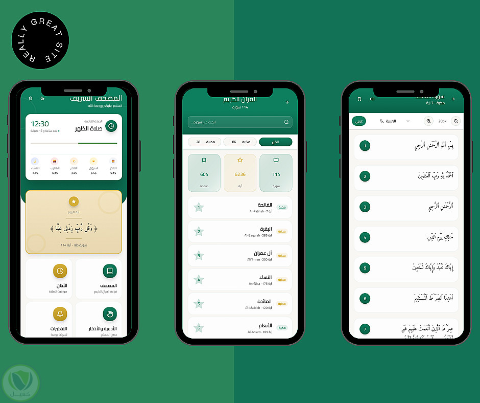 تطبيق قرآن كريم متكامل Flutter مع الأذكار ومواقيت الصلاة بتصميم إسلامي عصري - ahmed Adel | ربحي