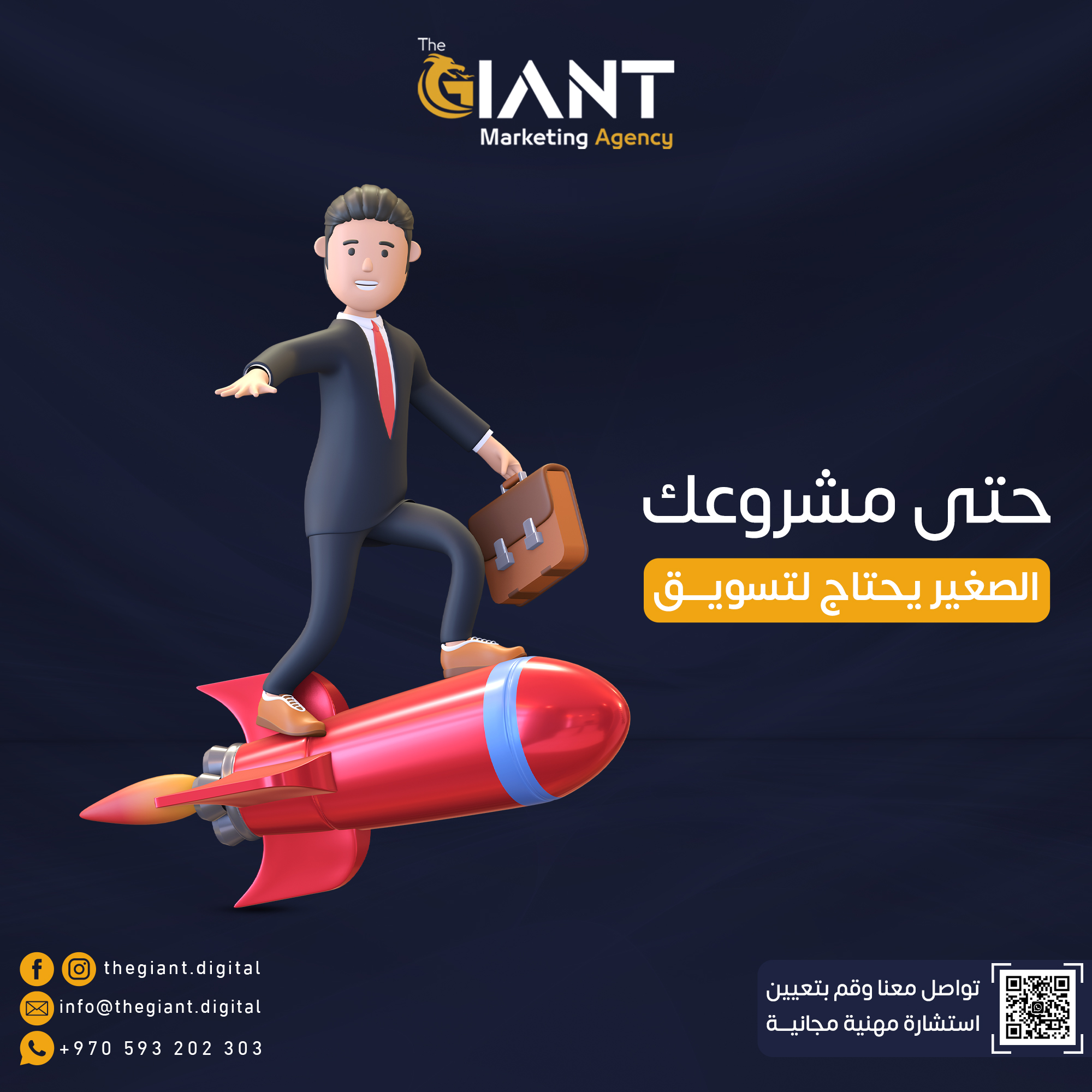 قمت بتطوير وتنفيذ سلسلة متكاملة من تصاميم السوشيال ميديا لوكالة “العملاق الرقمي (The Giant Digital)”، وهي وكالة رقمية شاملة تقدّم خدمات التسويق الإلكتروني، التصميم الإبداعي، تطوير المواقع، البرمجة، والموشن جرافيك، وذلك بهدف تعزيز حضورها الرقمي وإبراز تنوع خدماتها بأسلوب احترافي وجذاب.