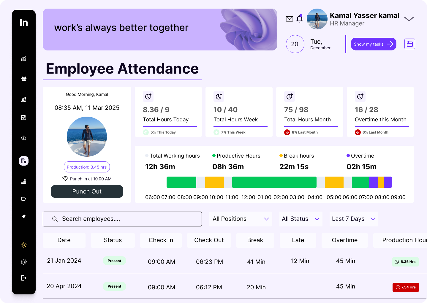 قمت بتصميم وتطوير نظام متكامل لإدارة الموارد البشرية (HR System) يتكون من تطبيق للموظفين و لوحة تحكم للإدارة (Dashboard). يتيح النظام للموظفين تسجيل الحضور والاطلاع على البيانات الخاصة بهم، بينما يمكن للـ Leaders والمديرين متابعة أداء الموظفين وإدارة الطلبات والبيانات بسهولة. يتضمن النظام واجهتين رئيسيتين: واجهة للموظفين و واجهة للإدارة لإدارة العمليات بشكل منظم وفعال.