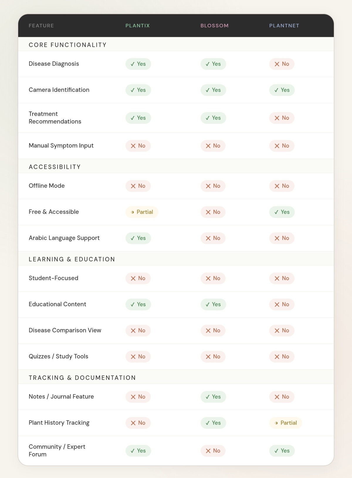 تحليل المنافسين لتطبيقات أمراض النبات – دراسة تجربة المستخدم