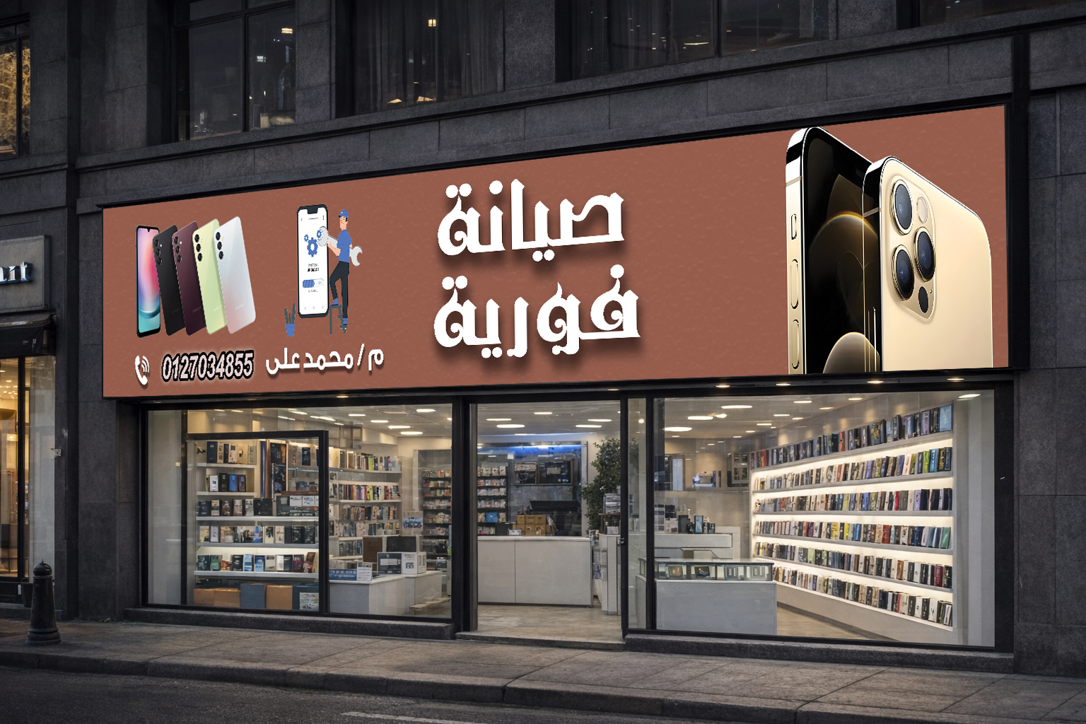 قمت بتصميم يافطة احترافية مبتكرة لمتجر متخصص في بيع الهواتف الذكية، وكان الهدف الرئيسي هو إنشاء واجهة بصرية جذابة وملفتة للانتباه تسهم في تعزيز هوية المتجر وجذب العملاء المحتملين. ركز هذا المشروع على دمج عناصر تصميم تجمع بين الواقعية والتأثير البصري القوي، لضمان بروز اليافطة وفعاليتها التسويقية عند عرضها على واجهة المحل.