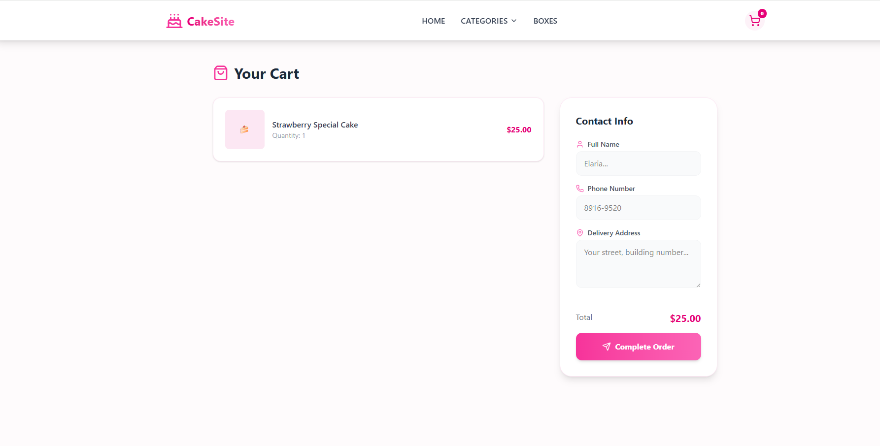 مشروع CakeSite هو عبارة عن منصة تجارة إلكترونية متكاملة (E-commerce) مخصصة لطلب الحلويات والكيك عبر الإنترنت. تم التركيز في هذا المشروع على تقديم واجهة مستخدم (UI) جذابة "Cute" تتناسب مع طبيعة المنتج، مع تجربة مستخدم (UX) سلسة تضمن سهولة التصفح والطلب.