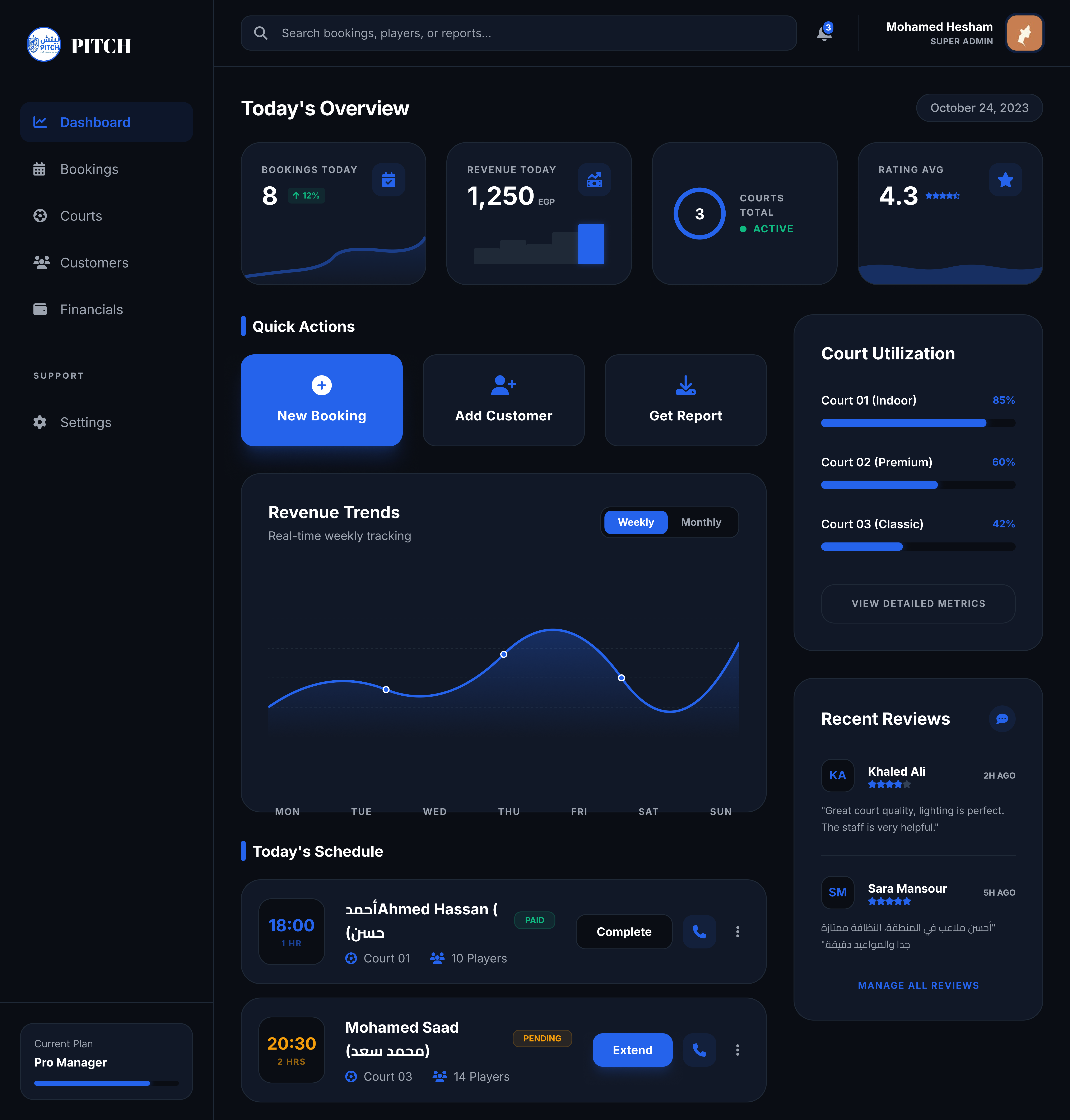 PITCH - Sports Facility Management Dashboard