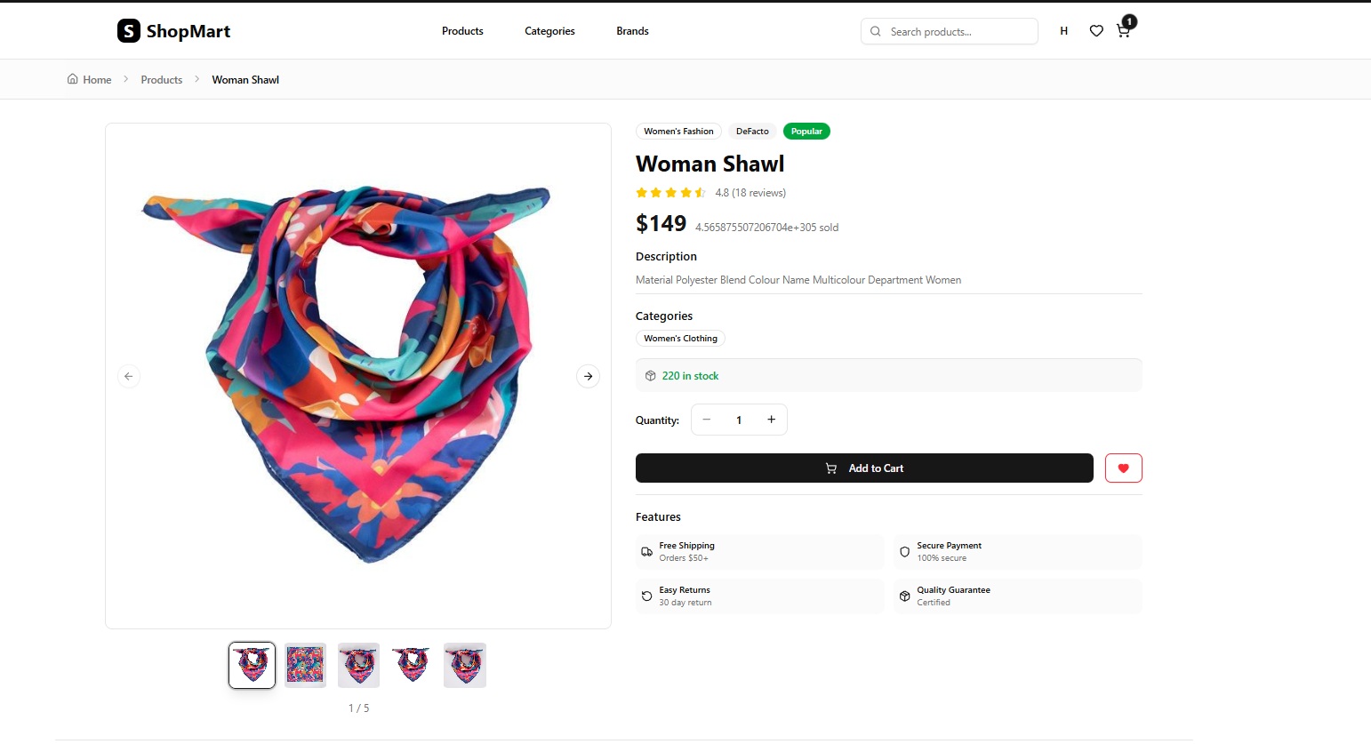 ShopMart هو تطبيق تجارة إلكترونية متكامل قمت بتطويره باستخدام Next.js 16 (App Router) و TypeScript، يهدف لتقديم تجربة تسوق احترافية بمعايير إنتاج حقيقية (Production-Ready).