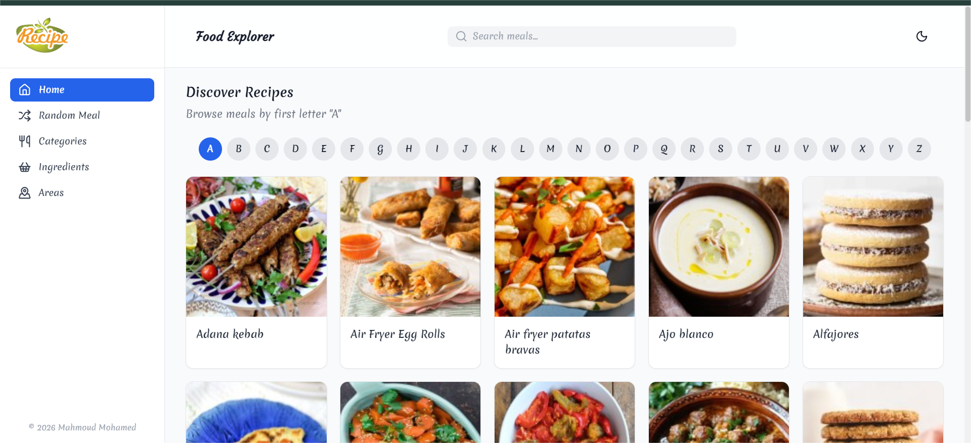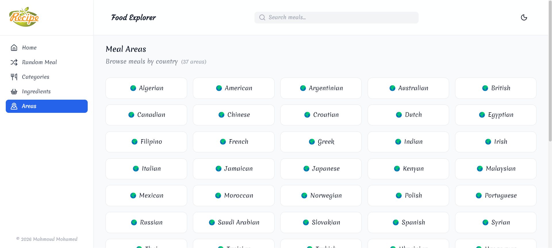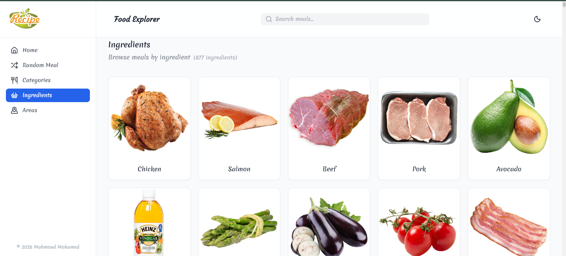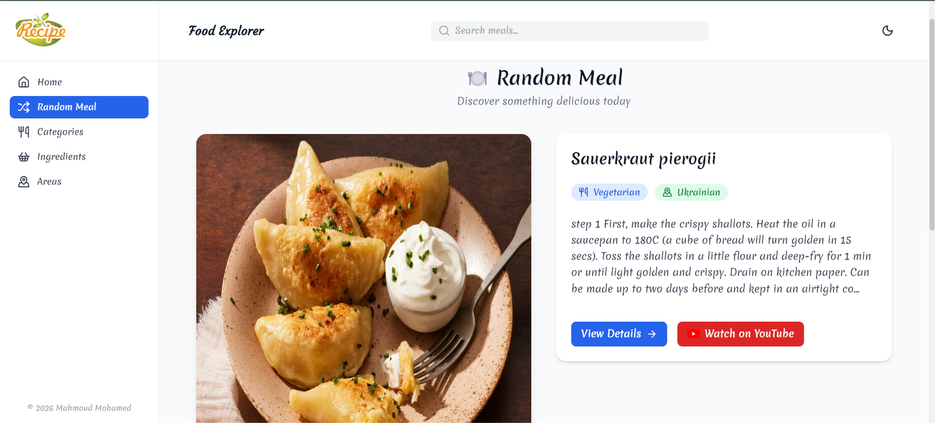 استكشف وصفات الطعام من جميع أنحاء العالم - Food Explorer - Mahmoud Mohamed | ربحي