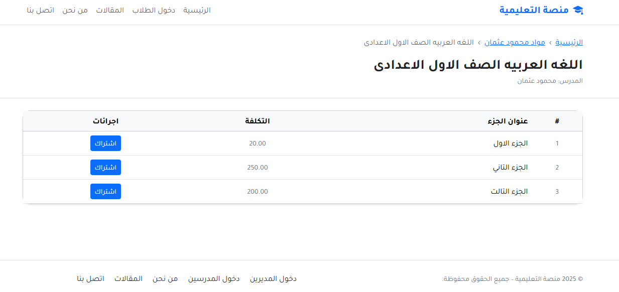 توفر المنصة بيئة تعليمية منظمة تتيح للمدرسين نشر كورساتهم وإدارتها بسهولة، مع إمكانية وصول الطلاب إلى المحتوى التعليمي بشكل بسيط وسلس. كما تركز المنصة على تقديم تجربة استخدام مريحة، تساعد الطلاب على متابعة الدروس والاستفادة من المحتوى التعليمي في أي وقت.