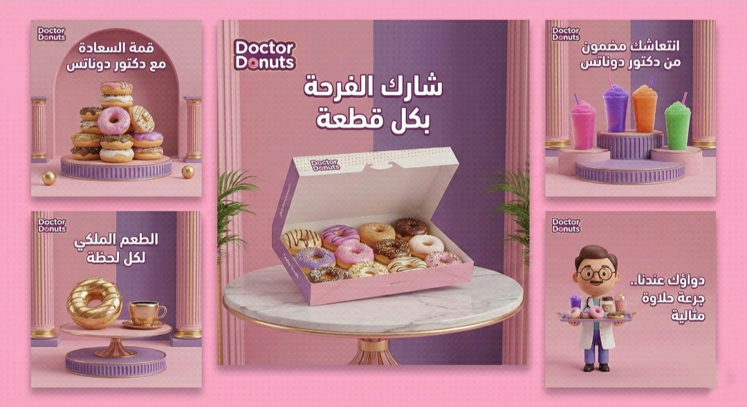 📌 وصف المشروع: تصاميم سوشيال ميديا لعلامة Doctor Donuts