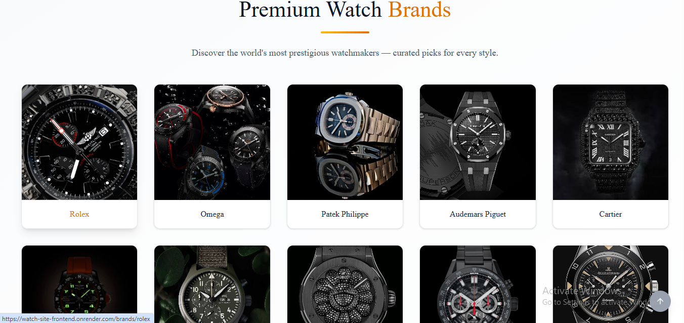 يوفر المتجر تجربة تسوق حديثة وسريعة تتيح للمستخدمين تصفح الساعات بسهولة، مشاهدة تفاصيل المنتجات، إضافة المنتجات إلى السلة، وإتمام عملية الشراء بطريقة آمنة.