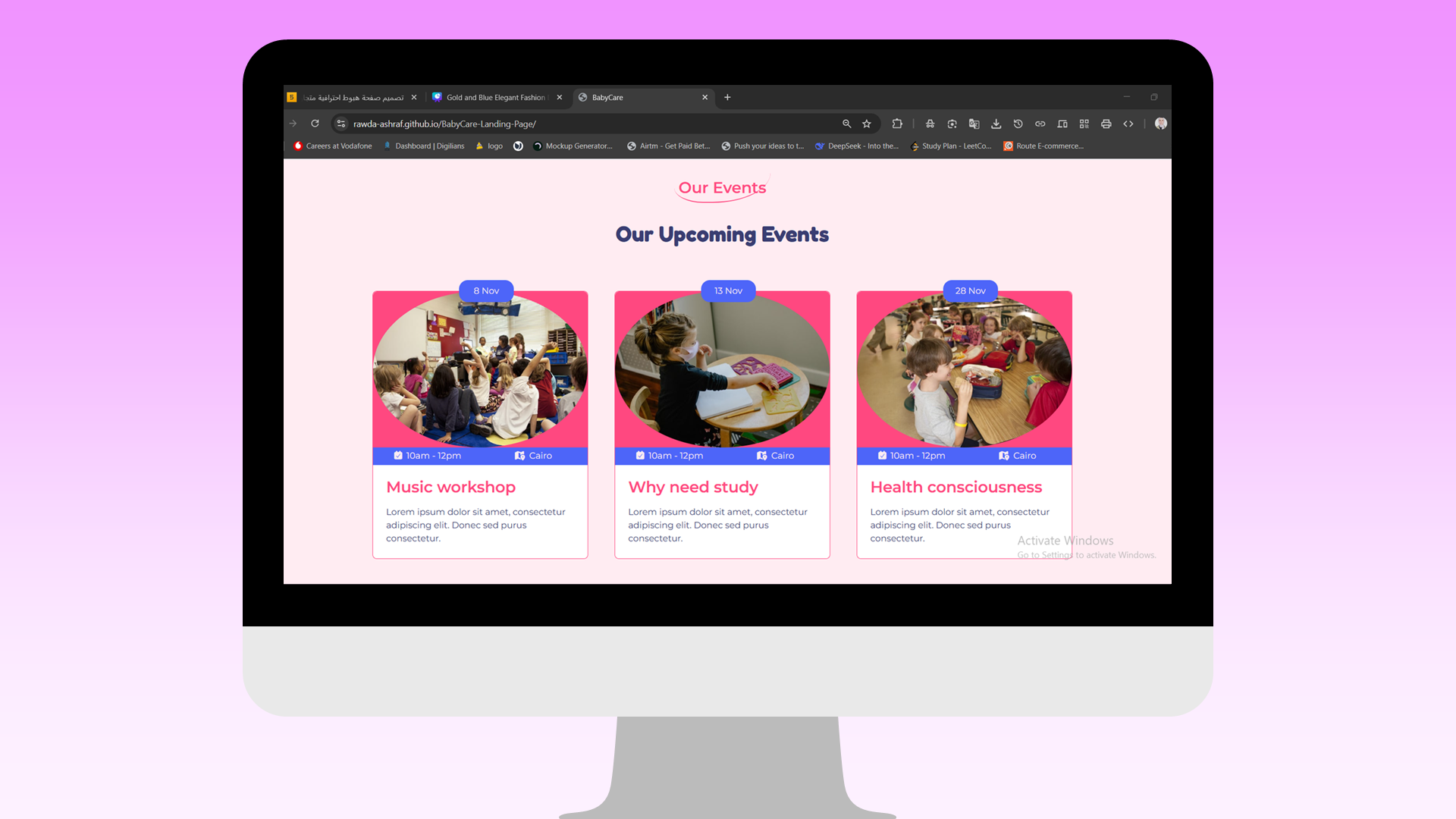 شريط تنقّل (Navbar): منسّق وواضح لتسهيل التنقل بين أقسام الصفحة.
