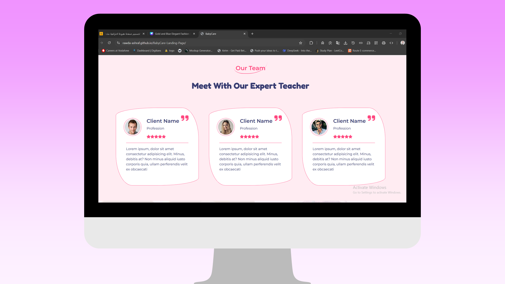 أنا أقدّم لك تصميمًا مميزًا باستخدام HTML CSS Bootstrap، بتصميم متجاوب يناسب جميع الأجهزة (موبايل – تابلت – كمبيوتر).