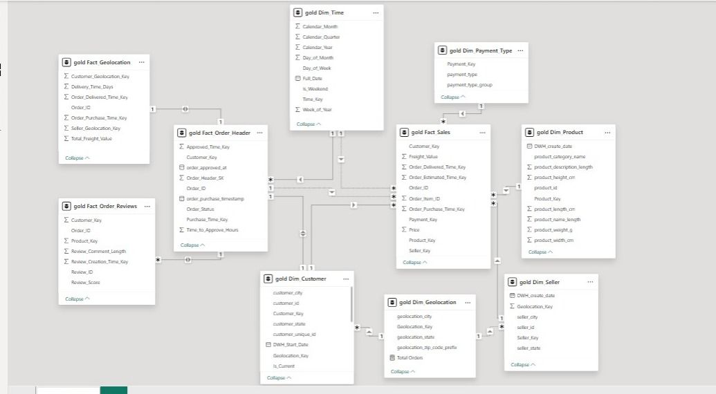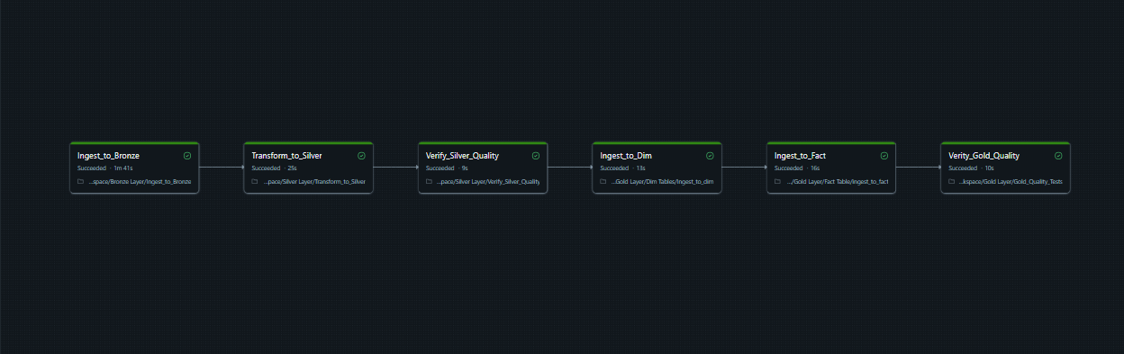 نمذجة البيانات (Data Modeling): تصميم نموذج Star Schema للطبقة الذهبية (Gold Layer)، مما ساهم في تحسين أداء الاستعلامات واستخراج مؤشرات الأداء الرئيسية (KPIs) المتعلقة بالإيرادات بسرعة فائقة.